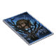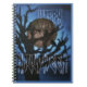 Ce dessin numérisé, graphique, représente un arbre fantomatique, à l'allure grinçante, aux membres en forme de griffe, étiré vers, une lune ombragée, couleur bronze, aux oiseaux du Corbeau, perché, parmi les branches, exposé de gothique, salut, contre un ciel bleu, et bleu nuit.