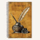 Ce carnet est une pièce unique et magnifiquement conçue, inspirée de l'esthétique antique, qui capte la beauté et l'art de l'écriture à l'ancienne. Le design présente une gamme d'outils d'écriture vintages, avec un élégant puits d'encre orné de détails complexes au centre, tenant un stylo à bille et une brosse à encre, rayonnant avec son charme traditionnel.
