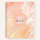 Un élégant et moderne motif abstrait d'été tropical. corail rustique, arrière - plan rose rose or et feuilles de palmiers blancs. Décoré avec des traits de brosse en faux or. Ajoutez votre nom et votre lettre de monogramme. Un collège dirigeait le carnet pour les filles et les femmes.