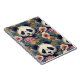 Notebook with pandas among flowers.