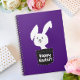 Un drôle de lapin blanc surgit de la poche dessinée, le tout sur un arrière - plan violet. Ce carnet mignon a un texte personnalisable - vous pouvez le modifier et le remplacer par un nom, ou changer sa taille ou sa couleur. Grand cadeau humoristique pour Pâques, parfait pour l'école ou le bureau. Veuillez consulter ma collection EASTER pour d'autres produits ayant un design similaire.