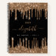 Un élégant arrière - plan noir avec des gouttes de parties scintillant en faux or, la peinture goutte à goutte. Personnalisez et ajoutez une année, un nom et un titre. Le nom est écrit avec un grand script doré de style moderne et écrit à la main. Parfait pour l'école, le travail ou l'organisation de votre vie personnelle/familiale. Pour que les swashes ne suppriment que le nom de l'échantillon, laissez les espaces ou émoticônes devant et après le nom.