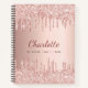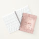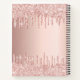 Un arrière - plan rose à l'apparence métallique. or rose, faux parties scintillant rose gouttes, la peinture goutte à goutte comme décoration. Personnalisez et ajoutez un nom, une lettre monogramme et un texte sur le devant. Le nom est écrit un rose moderne couleur or foncé écriture manuscrite. Parfait pour les devoirs scolaires, retour à l'école.