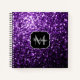 Carnet en spirale étincelante offre scolaire unique pour les filles. Personnalisez avec votre initiale et votre nom. De belles parties scintillant violettes brillantes et girly glamour scintillent. Photo de flammes violettes pas de parties scintillant réelle !