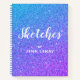 Gardez votre art dans ce moderne Girly Purple Blue Parties scintillant Nom Script Sketchbook Notebook. Cliquez sur l'option personnaliser et suivez l'invite pour visualiser votre propre carnet de croquis personnalisé. Les deux côtés sont conçus avec un arrière - plan de parties scintillant sombre violet et bleu foncé. L'avant a des "croquis" en lettres modernes blanches et élégantes, suivis d'un nom personnalisé dans un petit cadre noir. Fabrique une idée de cadeau pour quelqu'un qui aime le dessin.