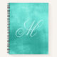 Créez votre propre grand carnet monogrammé pour votre fille. Les pages sont mi-croquis et mi-large régis pour sa revue créative et artistique. Vous pouvez changer la couleur du style de police monogramme couleur bleu aqua pâle. Le design graphique arrière - plan est une texture pastel à vert d'eau et d'un bleu vert d'eau. La feuille d'argent est un élément graphique, comme une photo imprimée de métal brossé.
