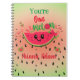 C'est un beau et mignon cahier de nom d'anniversaire pour fille de 1 an sur le thème de la pastèque "une dans une pastèque". Le design présente un visage de dessin animé souriant mignon et drôle sur une tranche de pastèque 🍉 avec un ruban à nœud rose mignon 🎀, des cœurs rouges et verts 💕, des graines de pastèque et un fond rose pastel vert. Vous pouvez facilement modifier le texte et la couleur en cliquant sur l'option de personnalisation.