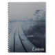 Peinture de brouillard sur la tourbière avec chemin en bois, petits étangs et pins. sentier randonnée avec passerelle en bois qui traverse la mare.