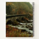 Carnet spiral avec une photo de la nature. Moody et beau paysage. Un pont de pierre isolé au bord d'une rivière animée avec une forêt et des montagnes entourant la région.
