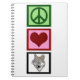 Un signe de paix vert, un coeur rouge et un loup gris. Un joli cadeau pour quelqu'un qui aime les loups.