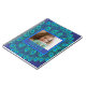 Superbe design personnalisé bleu et vert avec texte et espace photo personnalisés. Le centre du design est un cadre bleu vif. Dans le cadre est une photo personnalisable et le nom dans un élégant texte moderne. Autour du cadre, on retrouve les couleurs brillantes des plumes de queue des paons - le turquoise, l'aqua et le blues.
