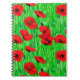 Carnet dans un motif d'aquarelle semi-abstrait de pavots rouges dans un champ, contre des tiges vertes et des feuilles