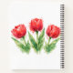 Elegant watercolor illustration of red tulips with soft green leaves, inspired by nature and floral beauty. A delicate personalized name adds a unique and meaningful touch, making this notebook perfect for everyday use or as a thoughtful gift.
