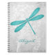 Créez un journal unique et unique avec un Carnet de photos spirales personnalisées de libellules Turquoises. Carnet design dispose d'une libellule colorée, d'une vigne feuillue blanche douce contre un arrière - plan damassé gris clair avec une zone à personnaliser avec votre nom. Autres cadeaux disponibles avec ce design ainsi qu'une variété de couleurs.