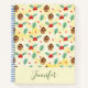 Carnet spiral avec un motif mignon avec des cônes de pin et saint sur un arrière - plan d'aquarelle jaune avec des petits cercles blancs éparpillés autour.