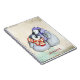 Un carnet en spirale avec une adorable illustration d'un couple de pingouins qui se blottit ensemble. Portant des écharpes d'hiver et des casquettes. Placé sur un arrière - plan vintage couleur crème aux accents turquoise le long des bords. Personnalisez avec un nom ou un autre texte.
