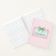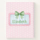 This cute notebook features a pink frame with blue and white stripes and topped with a preppy green and white gingham plaid bow on a background of pink and white polka dots on each side. Personalize with your choice of name or special text on the front and back. Fun for personalized party favors and gift bags.