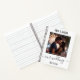 Un carnet avec votre photo personnalisée avec un cadre blanc élégant. Sur le dos, on découvre un motif en cuir imitation brun. Magnifique comme un journal de planification mariage ou personnalisable à d'autres fins.