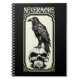 Illustration gothique du corbeau sur un crâne. Le texte Nevermore fait référence au Corbeau d'Edgar Allan Poe.