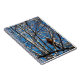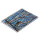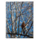Une photo d'un Robin Américain en train de regarder en haut pendant qu'il est perché sur une branche d'arbre. Les branches d'arbres donnent un aspect abstrait avec des lignes blanches et grises qui parsèment tout l'arrière - plan du ciel bleu. Copyright ©2021 Kimberly J Tilley.