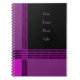 Un nouveau carnet en spirale original qui est parfait pour Pâques ou à tout moment. Il est violet et noir avec des rayures plaid et du texte clair violet (qui est optionnel ou personnalisable comme vous le souhaitez.