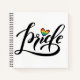 Cette oeuvre présente un texte de script avec un coeur arc-en-ciel coloré.