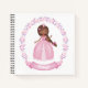 Une jolie princesse ethnique dans une robe rose scintillante décore ce cahier. Le dos du cahier a un motif floral rose délicat. Personnalisez-le avec votre nom. Fait un joli cadeau de fête d'anniversaire ou une faveur. Conçu pour vous par Blackberry Boulevard.