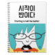 Grande illustration d'une femme écrivant dans un carnet. Une expression coréenne motivante dans hangul pour encourager la journalisme et l'écriture manuscrite.