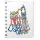 Cette conception a une illustration d'un rack d'escalade de roche qui a un ensemble de tirages rapides et un ensemble de fils / roches / écrous pendants d'un harnais d'escalade. Un design coloré pour tous ceux qui aiment l'escalade rock.