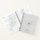 Un beau design monographique utilisant votre nom et initiale en forme de cercle classe. Une texture en faux lin gris dans l'arrière - plan aux accents noirs crée un style unique. Customisez le monogramme et le texte et faites-le votre propre livre de recettes. Fournitures de bureau et de papeterie d'école idéales. Autres couleurs de lin offertes dans ce design.