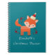 Un charmant carnet de Noël à l'ambiance rétro. Illustration d'un renard orange mignon, portant un chapeau de santa rouge entouré de décorations saintes de Noël. Un doux petit animal de forêt festif. Customisez avec votre propre nom.