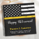Ajoutez la touche finale à votre fête de retraite d'agent de dispatching de police ou de retraite d'agent de dispatching 911 avec ce livre d'or pour invités de fête d'agent de dispatching à ligne dorée fine et ces fournitures de fête. Dessin du drapeau américain dans les couleurs du drapeau d'agent de dispatching, design noir et or moderne. Cette collection de retraite d'agent de dispatching de police sera un favori. Voir notre collection de ligne dorée fine pour les invitations de retraite d'agent de dispatching assorties, les cadeaux d'agent de dispatching, les faveurs de fête et les fournitures. COPYRIGHT © 2020 Judy Burrows, Black Dog Art - Tous droits réservés. Cahier de notes d'invité de drapeau à ligne dorée fine pour retraite d'agent de dispatching