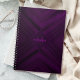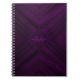 Un élégant cahier abstrait de style luxueux présentant un design géométrique violet. Personnalisez avec votre monogramme et nom personnalisés.