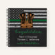 Livre d'or sur la retraite militaire de la ligne verte mince. Célébrez des années de service dévoué, votre retraite militaire et vos amis et votre famille invitations à votre fête militaire avec ce drapeau rustique de la ligne verte mince avec Bottes de l'armée en cuir Invitation à la retraite militaire. Etats-Unis Drapeau américain en couleurs Police Drapeau, noir vert blanc et or design. Cette invitation à la retraite militaire est également parfaite pour obtenir un diplôme militaire, un soldat qui s'éloigne, des déploiements et un retour à la maison, un lieu de changement dans la personnalisation. Consultez notre collection pour obtenir des cadeaux de retraite, des faveurs pour les militaires et des fournitures. DROIT D'AUTEUR © 2021 Judy Burrows, Black Dog Art - Tous droits réservés. Retraite militaire Carnet en cuir de ligne verte mince invité