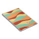 Ce carnet affiche un design des années 1970 et dispose d'une palette de couleurs époustouflante. Les couleurs dominantes sont la terre cuite, le jaune beurre, l'orange clair et le vert menthe. Le design présente des rayures ondulées abstraites qui ajoutent un mouvement tactile à l'esthétique globale. Ces bandes sont un clin d'oeil aux tendances artistiques des années 1970. Pour rendre ce carnet vraiment unique, il y a aussi la possibilité d'inclure du texte personnalisé pour votre nom.
