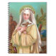 Dans cette jolie représentation tirée d'un dessin de dévotion, Saint Rose de Lima (1586-1617) se dresse dans un paysage tropical péruvien à la tombée de la nuit. Des petites étoiles jaunes scintillent dans le ciel bleu-vert foncé derrière elle. Elle est flanquée à gauche par une église en carton brun et à droite par un palmier balançant. Elle porte une couronne d’épines en souvenir de la passion du Christ sur son voile blanc, revêtue d’une habit dominicain crème qui lui convient parfaitement dans le Troisième Ordre. Elle tient une armure de roses roses roses et une croix en bois. + St Rose a été la première personne née dans les Amériques à être déclarée saint et reste populaire. Elle est le principal mécène du Pérou et des peuples indigènes d'Amérique Latine, co-protectrice des Philippines avec St. Pudentiana, protectrice des Amériques en général, et protectrice de Père Noël Rosa en Californie et de son diocèse. De plus, elle est la patronne des brodeurs, des jardiniers et des fleuristes. Naturellement, les roses de toutes les variétés sont devenus son attribut. Dans l'art, elle est peinte couronnée de roses, tenant des roses (comme ici), ou dans un décor de roses en pots ou de buissons roses fleuris. + Fête : 23 août + Crédit image (M 024) : Image antique de Saint Rose de Lima d'un chromolithographe dévotionnel imprimé en Allemagne, éditeur original inconnu, fin du 19ème au début du 20ème siècle, de la collection privée de l'architecte de l'éphémère religieux.