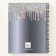 Un arrière - plan argenté à l'aspect métallique avec or rose, rose et faux parties scintillant argent gouttes, la peinture goutte à goutte. Personnalisez et ajoutez un nom, une lettre monogramme et un titre. Le nom est écrit en blanc avec un grand script de style à la main moderne avec des swashes. Parfait pour l'école, comme carnet de croquis ou pour prendre des notes. Pour que les swashes ne suppriment que le nom de l'échantillon, laissez les espaces ou émoticônes devant et après le nom.