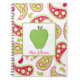 Un carnet de notes à spirale comportant un arrière - plan de Paisley rose et vert. Carré vert d'intérieur de pomme au centre. Personnalisez avec votre nom.