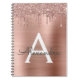 Rose Gold - Rose Pâle Faux Pailleté Métallic Brillant Monogramme Nom et Initial Cahier en Spirale. C'est le cadeau idéal pour un anniversaire sweet 16, un mariage, une douche de mariée, un anniversaire de mariage, une baby shower ou une soirée entre filles pour quelqu'un qui aime le luxe et les styles chic.