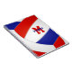 Ce carnet en spirale de volleyball sportif présente l'image réaliste d'un volleyball abstraitement surdimensionné avec des panneaux rouges, blancs et bleus - nom de l'athlète et monogramme, lettre de variété, ou numéro de maillot sont personnalisables en coordination rouge et bleu - par katz_d_zynes