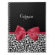 Personnalisez-vous en ajoutant le nom de n'importe quelle fille à ce bloc-notes empreinte de léopard blanc et noir, avec un joli ruban rouge vif attaché à un arc élégant. Ce design poster de animal à la mode est une image imprimée à plat et ne contient pas de ruban.