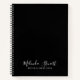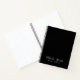 Carnet moderne professionnel avec nom en blanc style de police script moderne avec texte personnalisé en blanc style de police sans serif moderne sur arrière - plan noir.