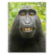 Autoportrait de macaque noir à crête de Sulawesi (macaca nigra) créé après la mise en place d'un appareil photo sur un trépied avec déclencheur à câble par le photographe. Cette image célèbre est également connue sous le nom de 'selfie de singe'.