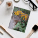 Carnet en spirale de taille personnelle qui présente l'image photographique de fleurs Plantes Leopard jaunes poussant à côté d'un banc de jardin avec les paroles inspirantes de la prière de sérénité. Un joli design floral !
