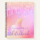 Un arrière - plan tendance aux couleurs irisées avec des couleurs pastel unicorne et arc-en-ciel en or rose, violet, rose. Décoré avec des gouttes de parties scintillant en or rose, rose, violet et une licorne de couleur arc-en-ciel. Personnalisez et ajoutez un nom. Le titre : Sketchbook est écrit avec un script à la main tendance avec des swashes. Pour que les swashes ne suppriment que le nom de l'échantillon, laissez les espaces ou émoticônes devant et après le nom. Utilisez-le comme carnet d'esquisses, dessin, prise de notes, idées artisanales, école, travail à domicile.