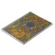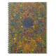 Un Carnet en spirale cool ou Journal, avec un motif abstrait de tourbillons fou dans les tons foncés, bleus, vert foncé et marron avec des reflets jaunes dorés.