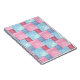 Un carnet en spirale attrayant, adapté à l'utilisation comme journal, avec un motif de couverture en patchwork de couleurs denim rose et bleu, d'une aquarelle peinte à la main par Judy Adamson.