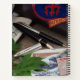 Voici un stylo-plume et un crayon Sheaffer Triumph Sentinel en noir c. 1947. L’emblématique nib à deux tonalités conique Triumph 14 carats de Sheaffer a été introduit en 1942 et le modèle Sentinel a été introduit en 1945, le premier stylo Sheaffer avec un casquette en acier inoxydable, donnant au stylo en forme de cigare un look robuste. Il a vendu $15 en 1947. Faites vos notes et croquis audacieux avec ce carnet Sheaffer Sentinel!