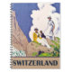 Suisse, carnet en spirale. Pendant la saison estivale, on profite de la vue sur les montagnes, avec le ciel bleu derrière. Affiche de voyage vintage sur la couverture de carnet