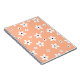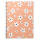 Unique Vintage White boho daisy floral pattern, filled with white and light pastel orange colors and happy flowers, on a soft pastel peach background. A boho retro daisies vintage hand-drawn floral botanical stylish design.